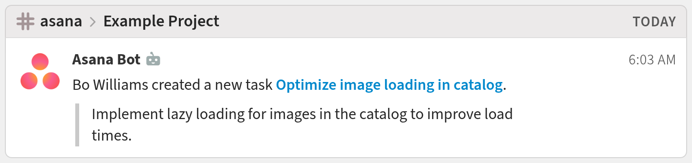 Create a bot for Asana. Make sure that you select Incoming webhook as the Bot type.