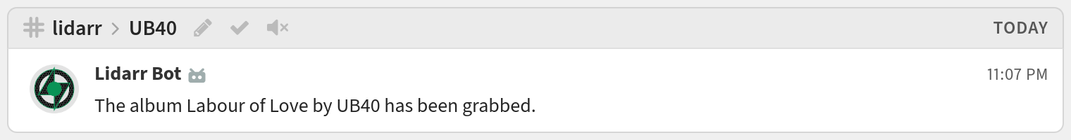 Create a bot for Lidarr. Make sure that you select Incoming webhook as the Bot type.