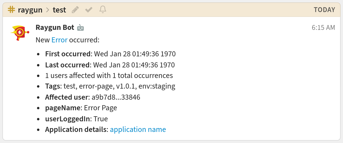 You're done! Your Raygun notifications may look like this: