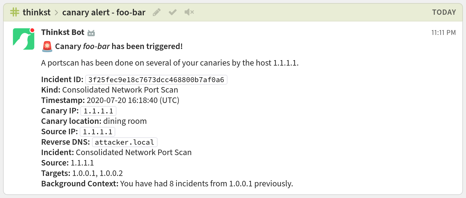 You're done! Your Thinkst notifications may look like this: