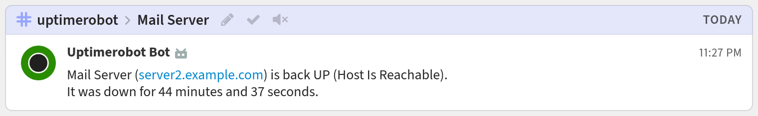 You're done! Your UptimeRobot notifications may look like this: