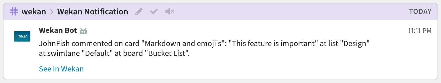 You're done! Your Wekan notifications may look like this: